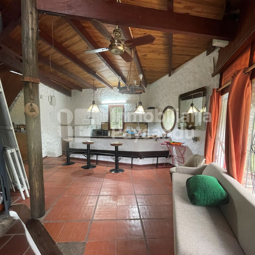 Planta Baja: Un amplio y luminoso living-comedor protagonizado por una estufa central de diseño. Este elemento no solo es el corazón visual de la casa, sino que funciona como un sistema inteligente de calefacción que distribuye calor a todos los ambientes. Completan este nivel una cocina funcional con barra desayunadora y un baño.