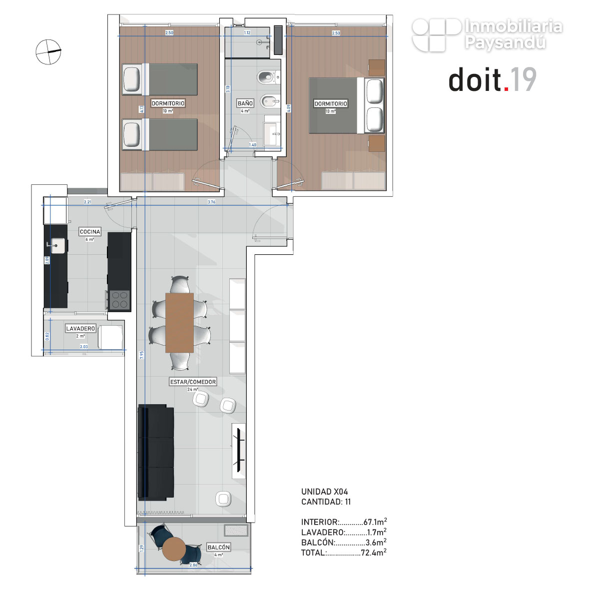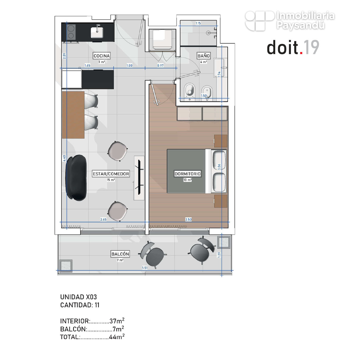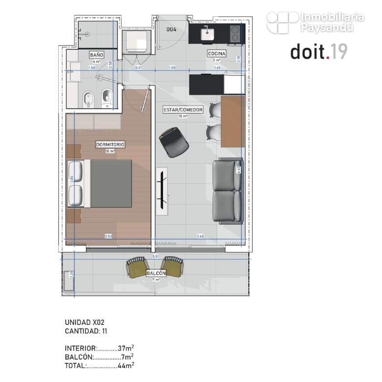 El proyecto se desarrolla en planta baja y once niveles, con palier recibidor, 22 cocheras techadas y 47 apartamentos de uno y dos dormitorios, diseñados para priorizar la comodidad, la eficiencia y la calidad de vida.