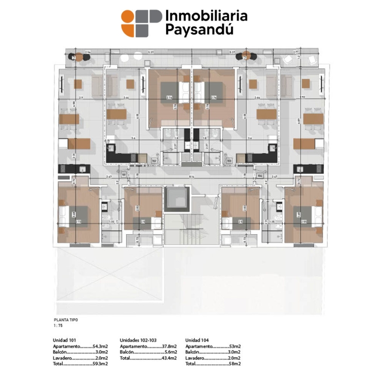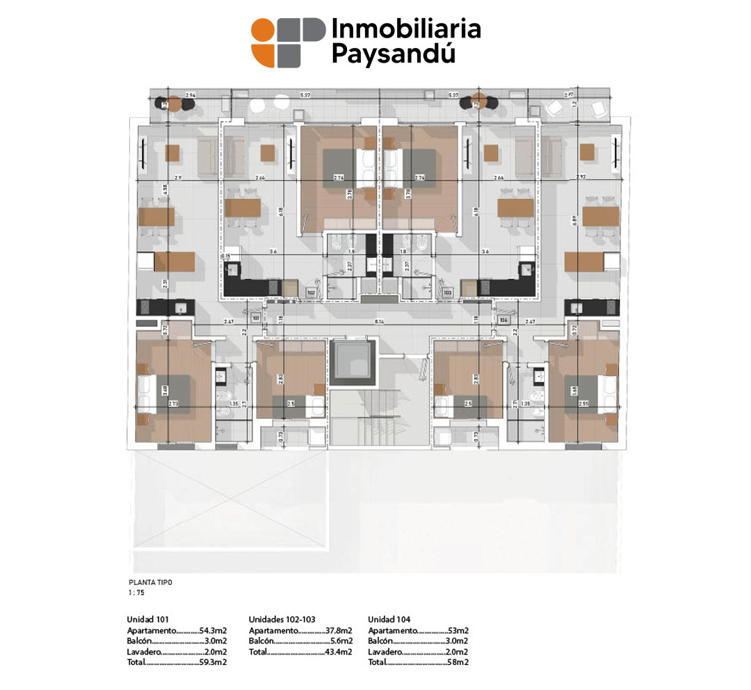 Con un total de 40 apartamentos, se tratan de unidades de uno y dos dormitorios, con o sin cochera.