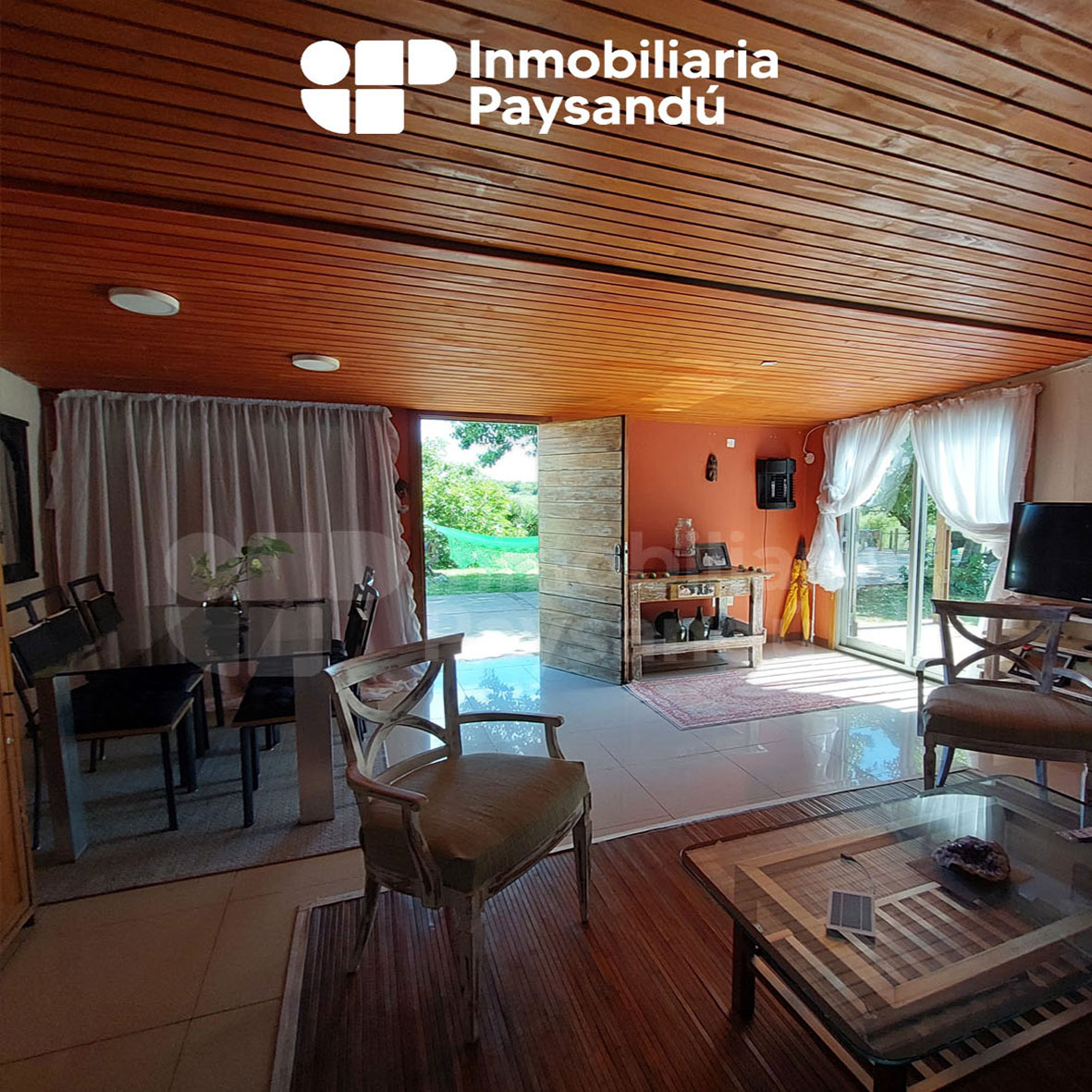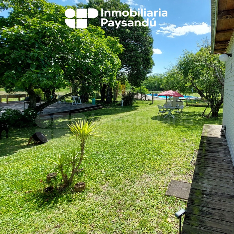 Casa quinta con todas sus comididades: 4 dormitorios, living con estufa a leña, cocina-comedor, 2 baños, mucho verde, jardín, cancha de futbol , parrillero y piscina.